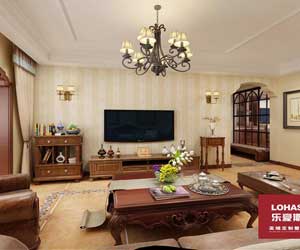 石材的電視背景墻既大氣又裝飾性極強,其他墻面采用跳躍性的綠色家具以及素面壁紙再搭配上淺色的地磚,給人一種溫馨干凈的第一印象。再搭配上線條簡單的中式家具,和舒適的靠背,很好的營造氛圍。