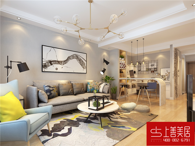 沙發(fā)背景墻:硬裝沒有做任何造型,主要軟裝搭配。
